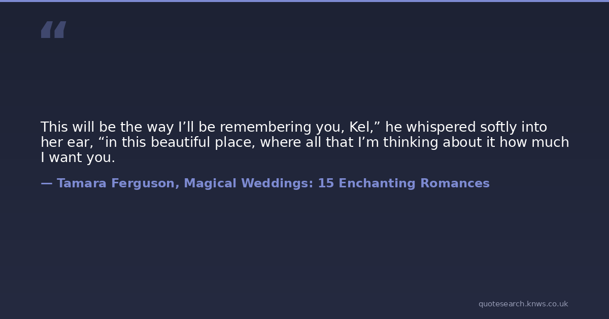 This will be the way I’ll be remembering you, Kel,” he whispered softly into her ear, “in this beautiful place, where all that I’m thinking about it how much I want you.
