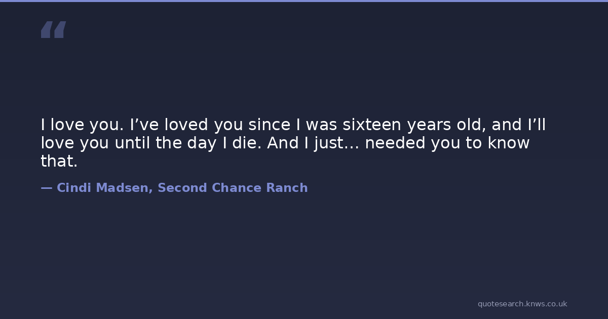 I love you. I’ve loved you since I was sixteen years old, and I’ll love you until the day I die. And I just… needed you to know that.
