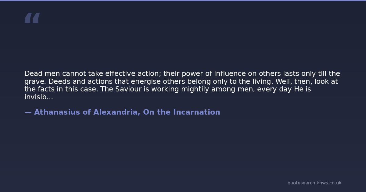 Dead men cannot take effective action; their power of influence on others lasts only till the grave. Deeds and actions that energise others belong only to the living. Well, then, look at the facts in this case. The Saviour is working mightily among men, every day He is invisibly persuading numbers of people all over the world, both within and beyond the Greek-speaking world, to accept His faith and be obedient to His teaching. Can anyone, in face of this, still doubt that He has risen and lives, or rather that He is Himself the Life? Does a dead man prick the consciences of men...?