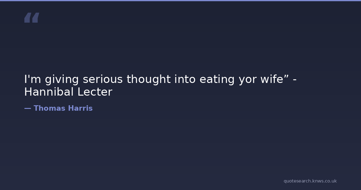 I'm giving serious thought into eating yor wife” - Hannibal Lecter horror suspense thriller Download Image Share on X Share on Facebook Copy Link