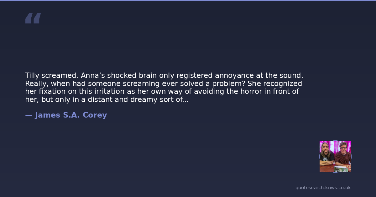 Tilly screamed. Anna’s shocked brain only registered annoyance at the sound. Really, when had someone screaming ever solved a problem? She recognized her fixation on this irritation as her own way of avoiding the horror in front of her, but only in a distant and dreamy sort of way.