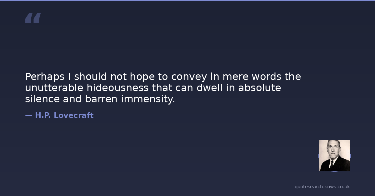 Perhaps I should not hope to convey in mere words the unutterable hideousness that can dwell in absolute silence and barren immensity.