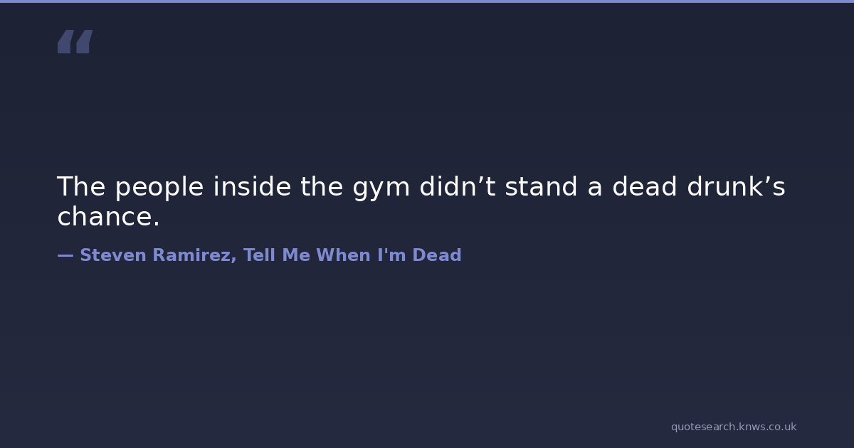 The people inside the gym didn’t stand a dead drunk’s chance.