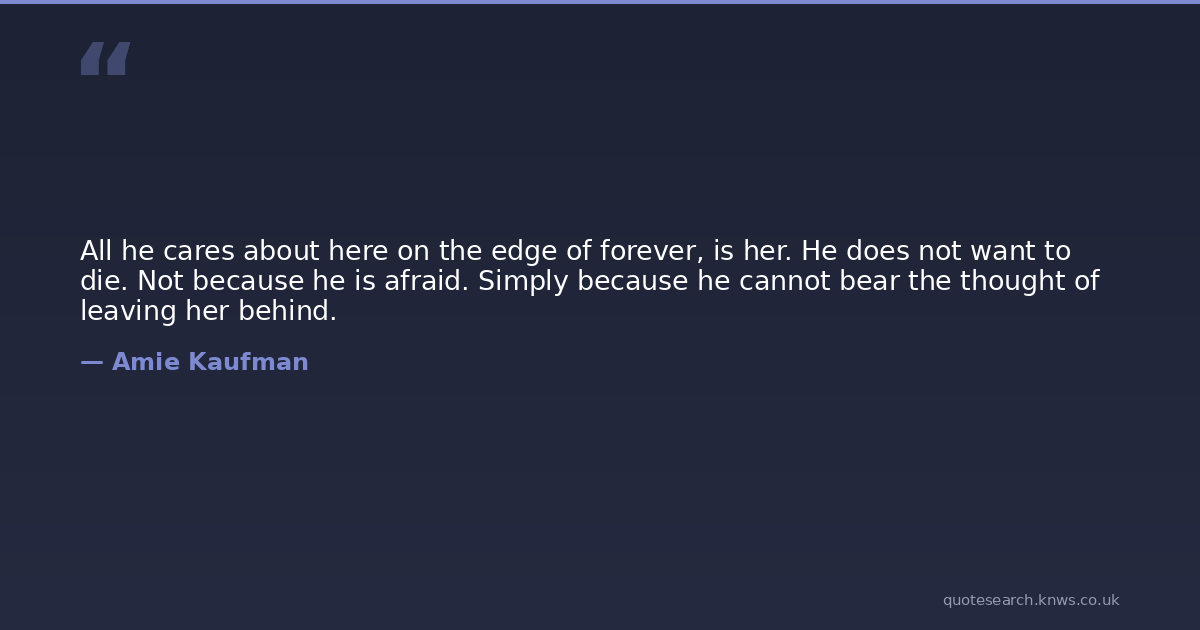 All he cares about here on the edge of forever, is her. He does not want to die. Not because he is afraid. Simply because he cannot bear the thought of leaving her behind.