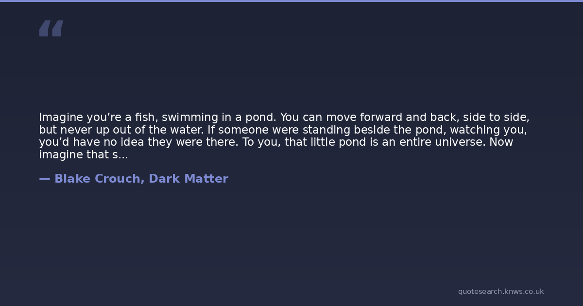 Imagine you’re a fish, swimming in a pond. You can move forward and back, side to side, but never up out of the water. If someone were standing beside the pond, watching you, you’d have no idea they were there. To you, that little pond is an entire universe. Now imagine that someone reaches down and lifts you out of the pond. You see that what you thought was the entire world is only a small pool. You see other ponds. Trees. The sky above. You realize you’re a part of a much larger and more mysterious reality than you had ever dreamed of.