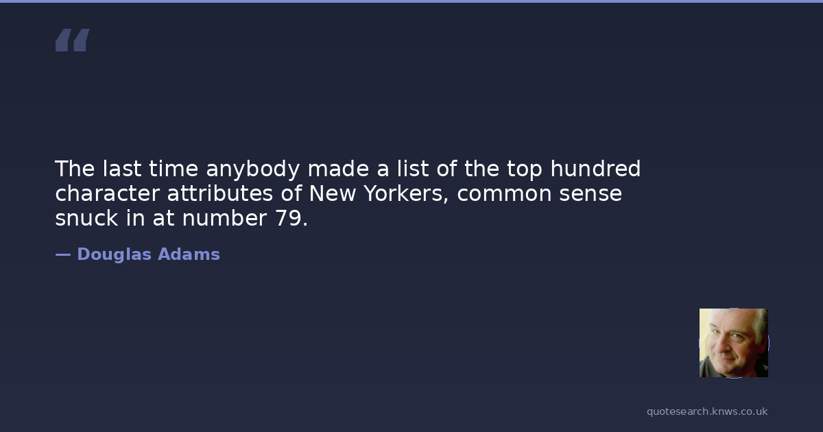 The last time anybody made a list of the top hundred character attributes of New Yorkers, common sense snuck in at number 79.