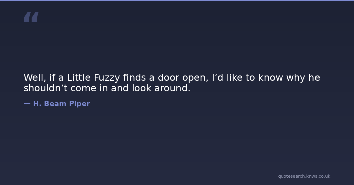 Well, if a Little Fuzzy finds a door open, I’d like to know why he shouldn’t come in and look around. first-contact science-fiction Download Image Share on X Share on Facebook Copy Link