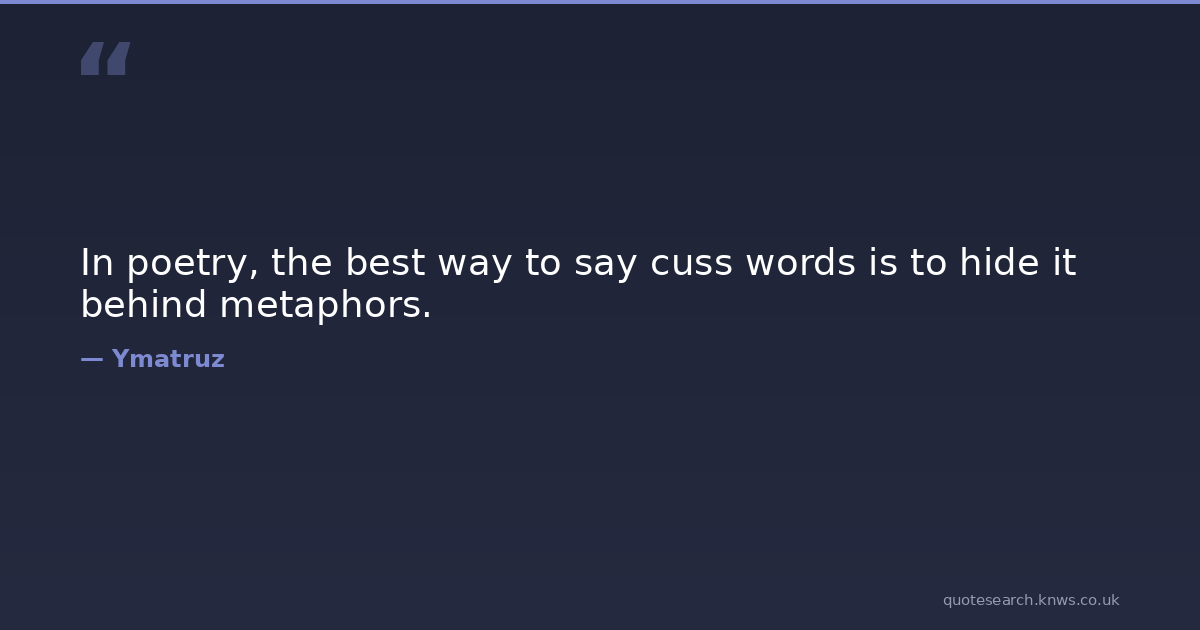 In poetry, the best way to say cuss words is to hide it behind metaphors.