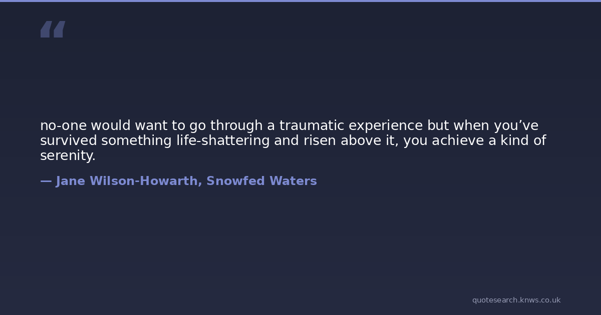 no-one would want to go through a traumatic experience but when you’ve survived something life-shattering and risen above it, you achieve a kind of serenity.