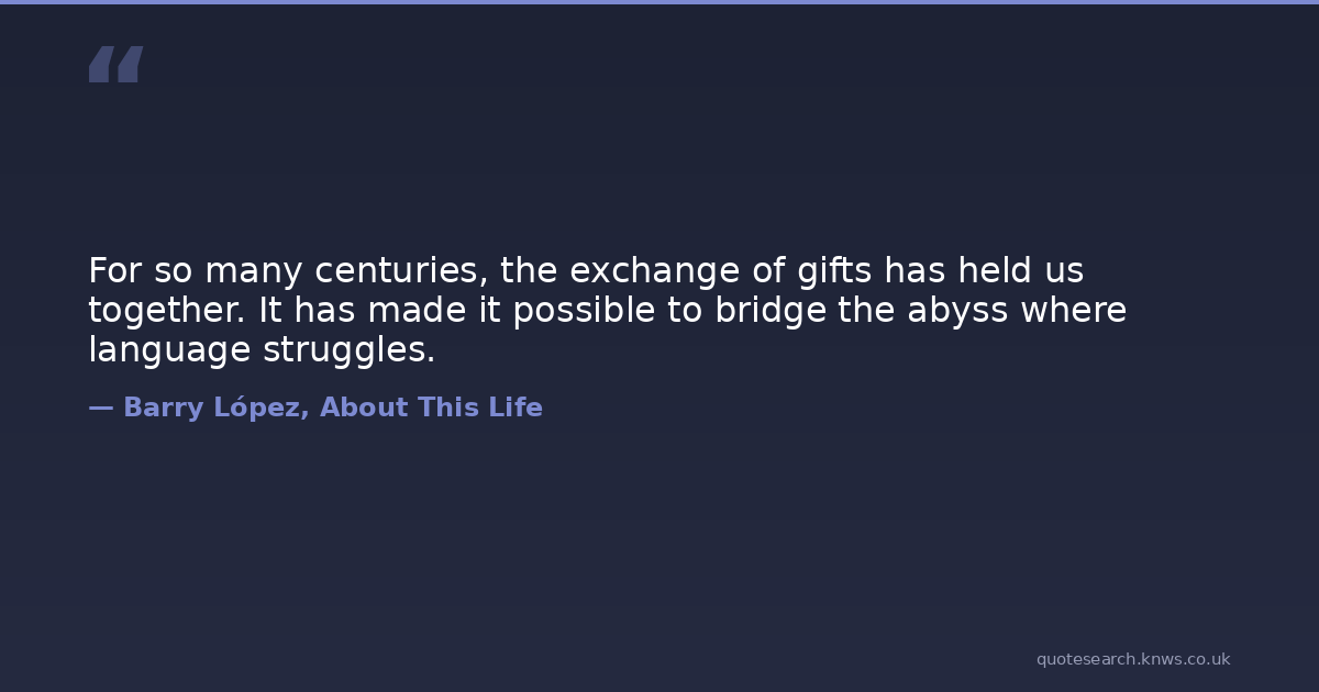 For so many centuries, the exchange of gifts has held us together. It has made it possible to bridge the abyss where language struggles.