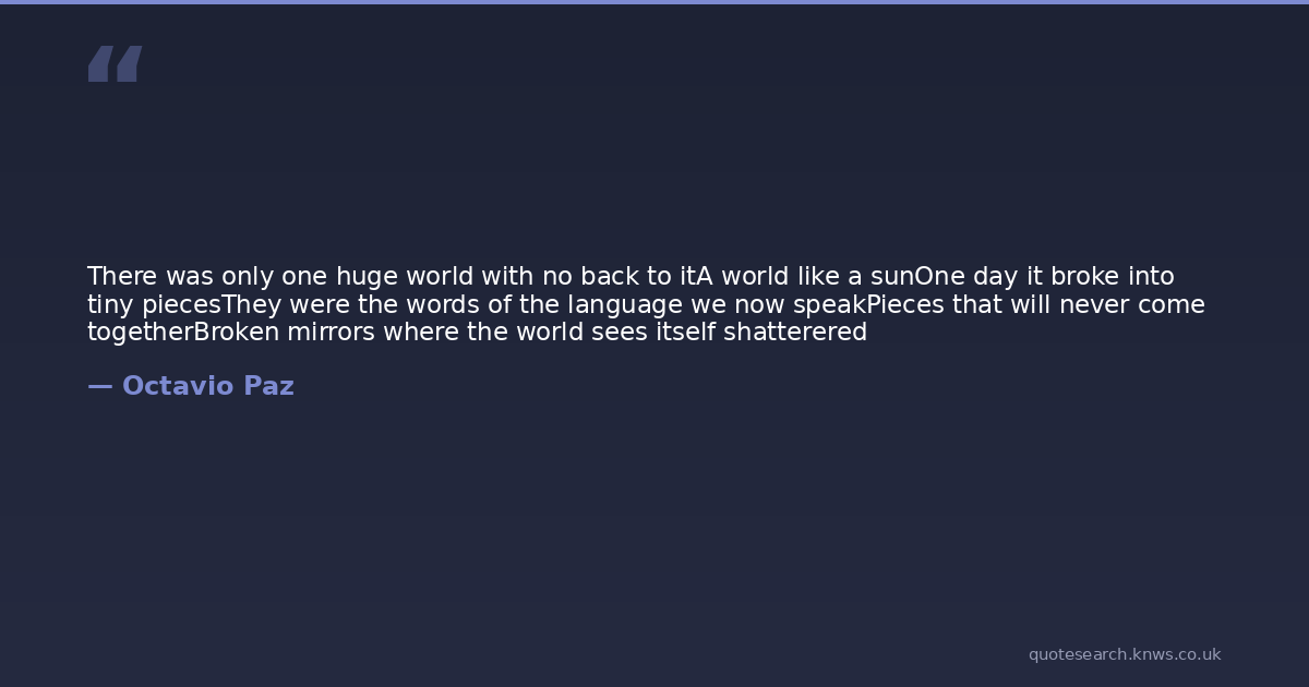 There was only one huge world with no back to itA world like a sunOne day it broke into tiny piecesThey were the words of the language we now speakPieces that will never come togetherBroken mirrors where the world sees itself shatterered