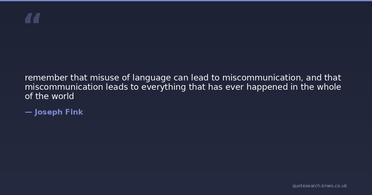 remember that misuse of language can lead to miscommunication, and that miscommunication leads to everything that has ever happened in the whole of the world