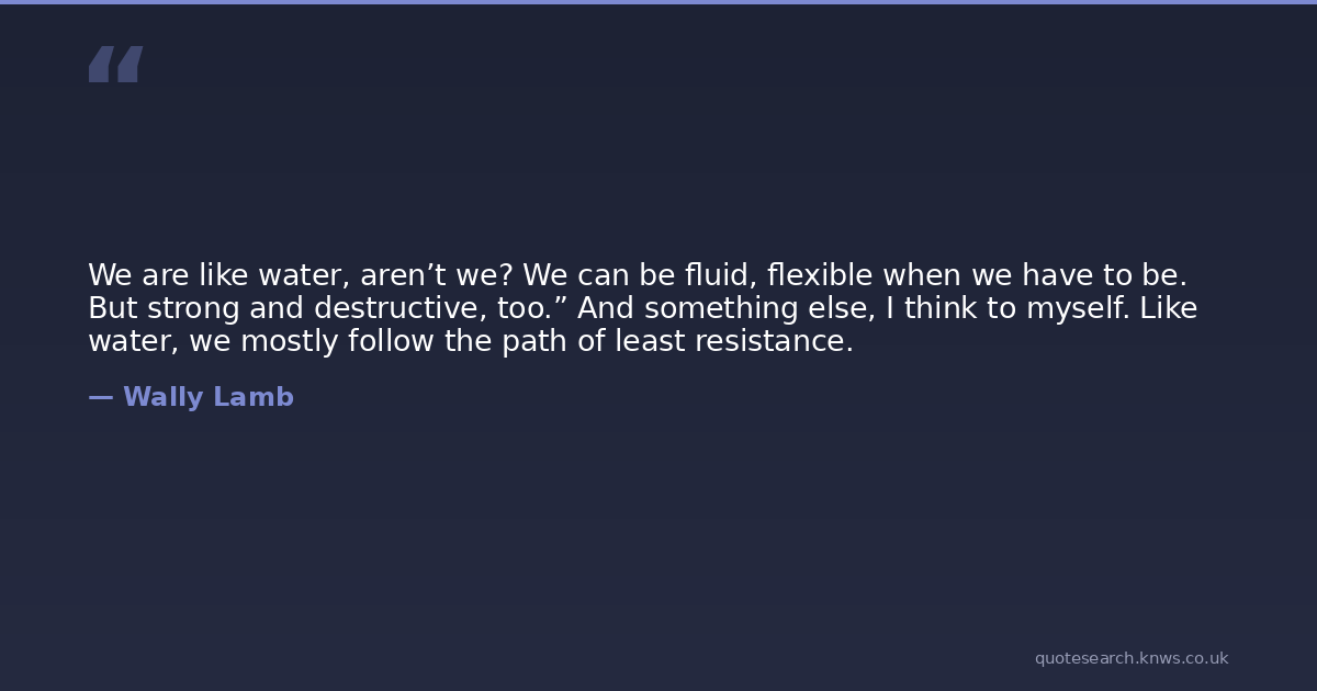 We are like water, aren’t we? We can be fluid, flexible when we have to be. But strong and destructive, too.” And something else, I think to myself. Like water, we mostly follow the path of least resistance.