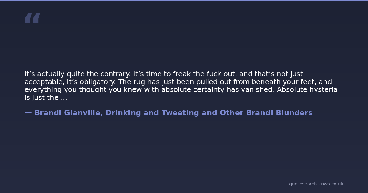 It’s actually quite the contrary. It’s time to freak the fuck out, and that’s not just acceptable, it’s obligatory. The rug has just been pulled out from beneath your feet, and everything you thought you knew with absolute certainty has vanished. Absolute hysteria is just the beginning—you’re about to embark on an entire roller coaster of crazy-ass emotions.