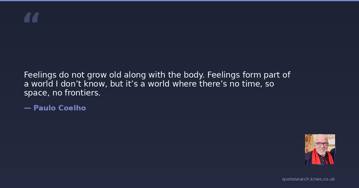 Feelings do not grow old along with the body. Feelings form part of a world I don’t know, but it’s a world where there’s no time, so space, no frontiers.