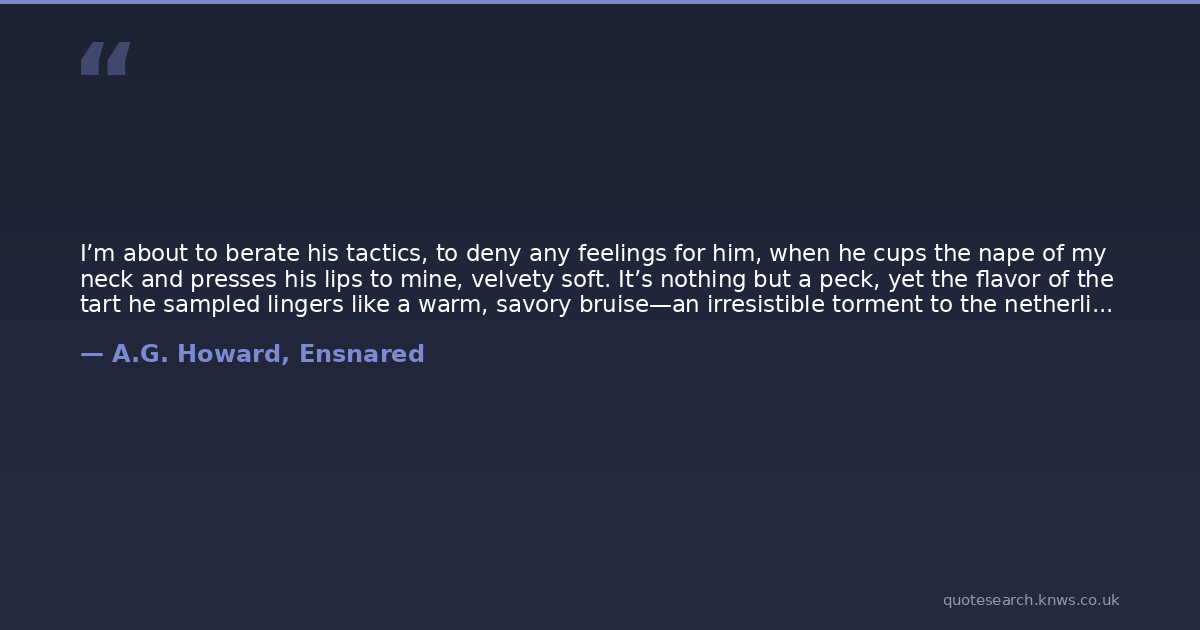 I’m about to berate his tactics, to deny any feelings for him, when he cups the nape of my neck and presses his lips to mine, velvety soft. It’s nothing but a peck, yet the flavor of the tart he sampled lingers like a warm, savory bruise—an irresistible torment to the netherling within.He draws back and my skin glistens, radiant prisms reflected off his face and the cushions. I’m gripping his jacket lapels, yet I don’t even remember reaching fo