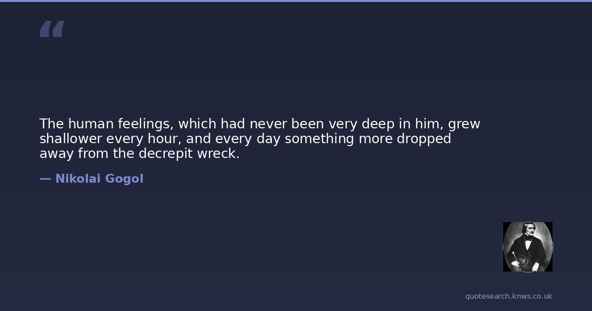 The human feelings, which had never been very deep in him, grew shallower every hour, and every day something more dropped away from the decrepit wreck.