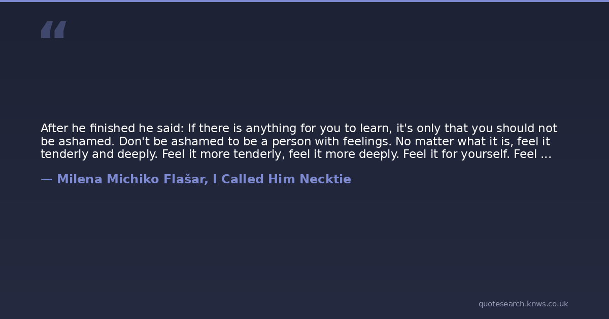 After he finished he said: If there is anything for you to learn, it's only that you should not be ashamed. Don't be ashamed to be a person with feelings. No matter what it is, feel it tenderly and deeply. Feel it more tenderly, feel it more deeply. Feel it for yourself. Feel it for others. And then: Let it go.