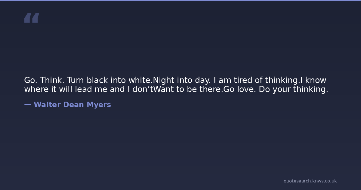 Go. Think. Turn black into white.Night into day. I am tired of thinking.I know where it will lead me and I don’tWant to be there.Go love. Do your thinking.