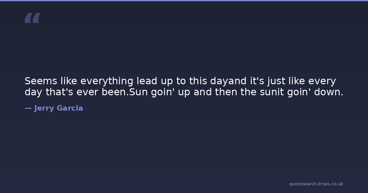 Seems like everything lead up to this dayand it's just like every day that's ever been.Sun goin' up and then the sunit goin' down.