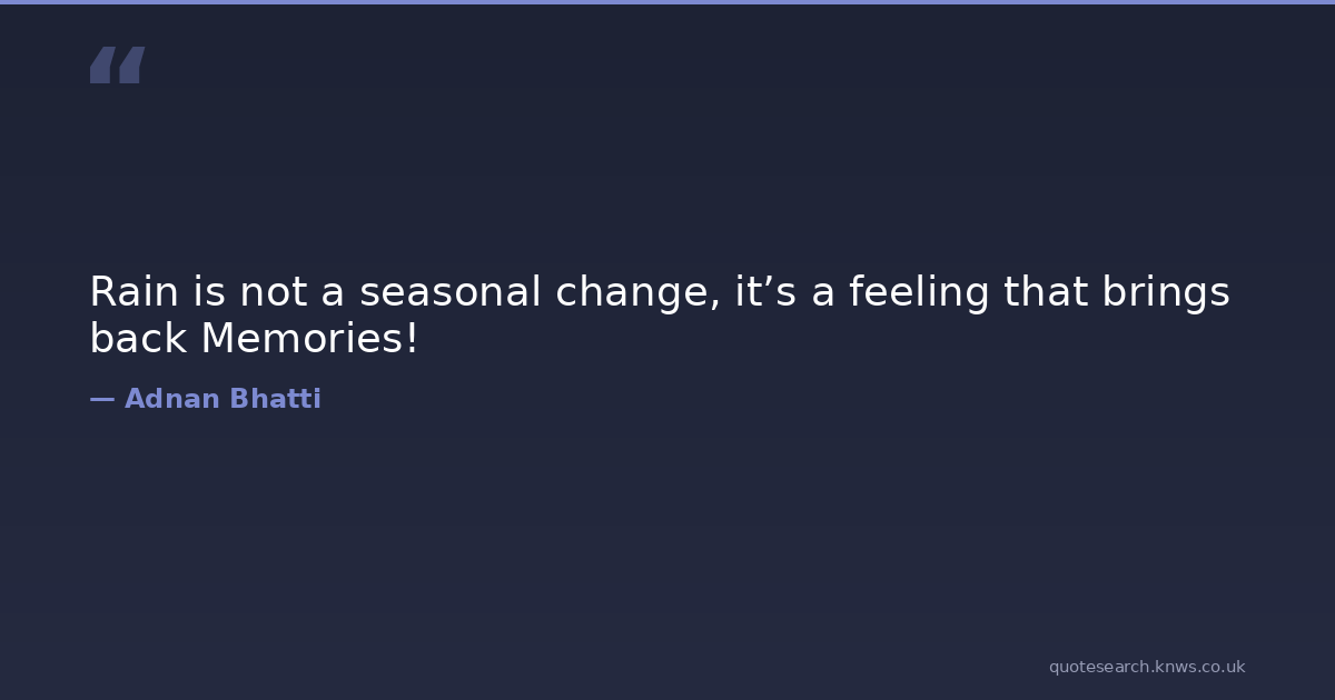 Rain is not a seasonal change, it’s a feeling that brings back Memories! beautiful-quotes memories memories-quotes rain-quotes Download Image Share on X Share on Facebook Copy Link