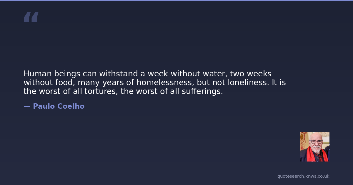 Human beings can withstand a week without water, two weeks without food, many years of homelessness, but not loneliness. It is the worst of all tortures, the worst of all sufferings.