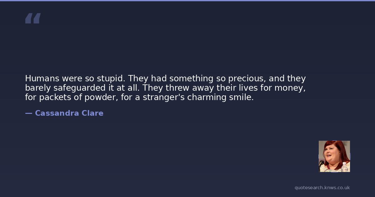 Humans were so stupid. They had something so precious, and they barely safeguarded it at all. They threw away their lives for money, for packets of powder, for a stranger's charming smile.