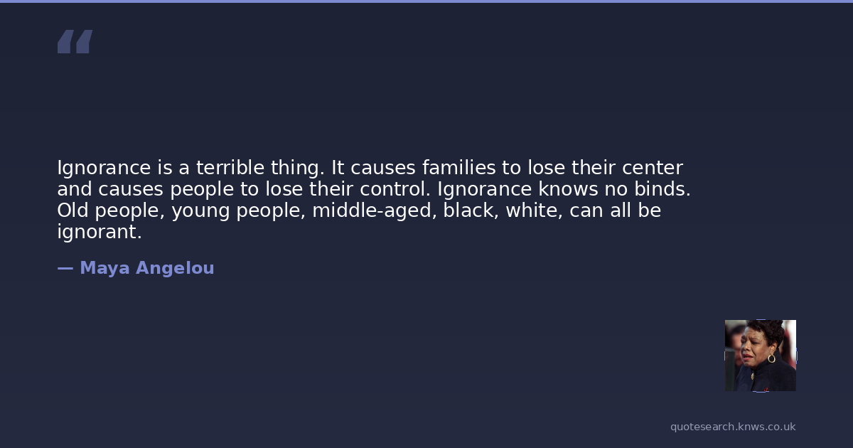 Ignorance is a terrible thing. It causes families to lose their center and causes people to lose their control. Ignorance knows no binds. Old people, young people, middle-aged, black, white, can all be ignorant.
