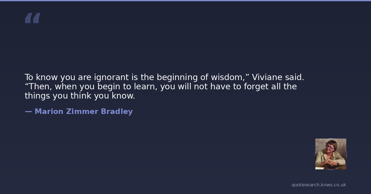 To know you are ignorant is the beginning of wisdom,” Viviane said. “Then, when you begin to learn, you will not have to forget all the things you think you know.