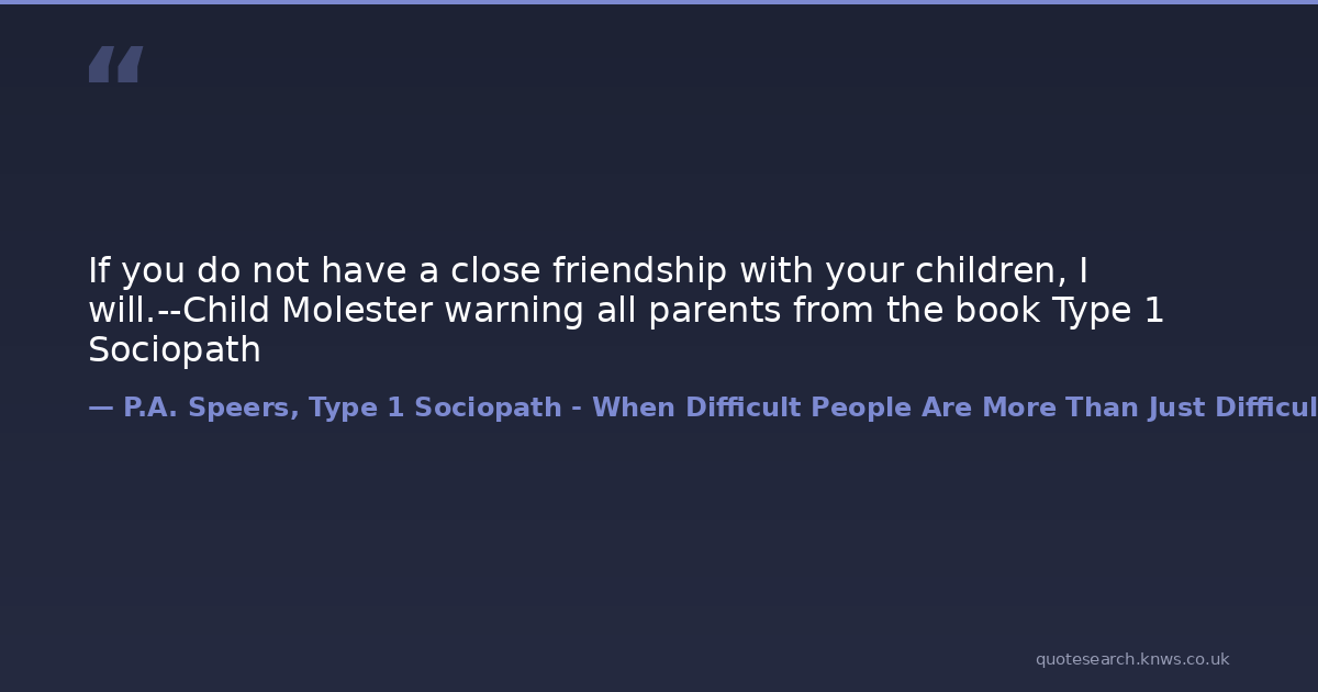 If you do not have a close friendship with your children, I will.--Child Molester warning all parents from the book Type 1 Sociopath