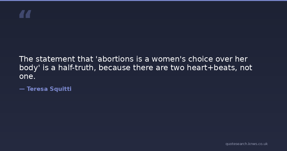 The statement that 'abortions is a women's choice over her body' is a half-truth, because there are two heart+beats, not one.