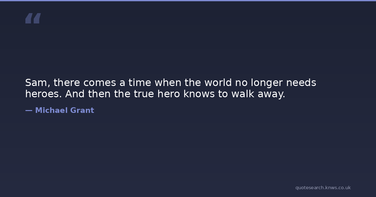 Sam, there comes a time when the world no longer needs heroes. And then the true hero knows to walk away.