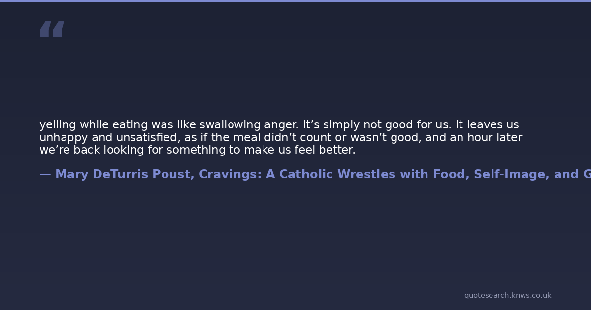 yelling while eating was like swallowing anger. It’s simply not good for us. It leaves us unhappy and unsatisfied, as if the meal didn’t count or wasn’t good, and an hour later we’re back looking for something to make us feel better.