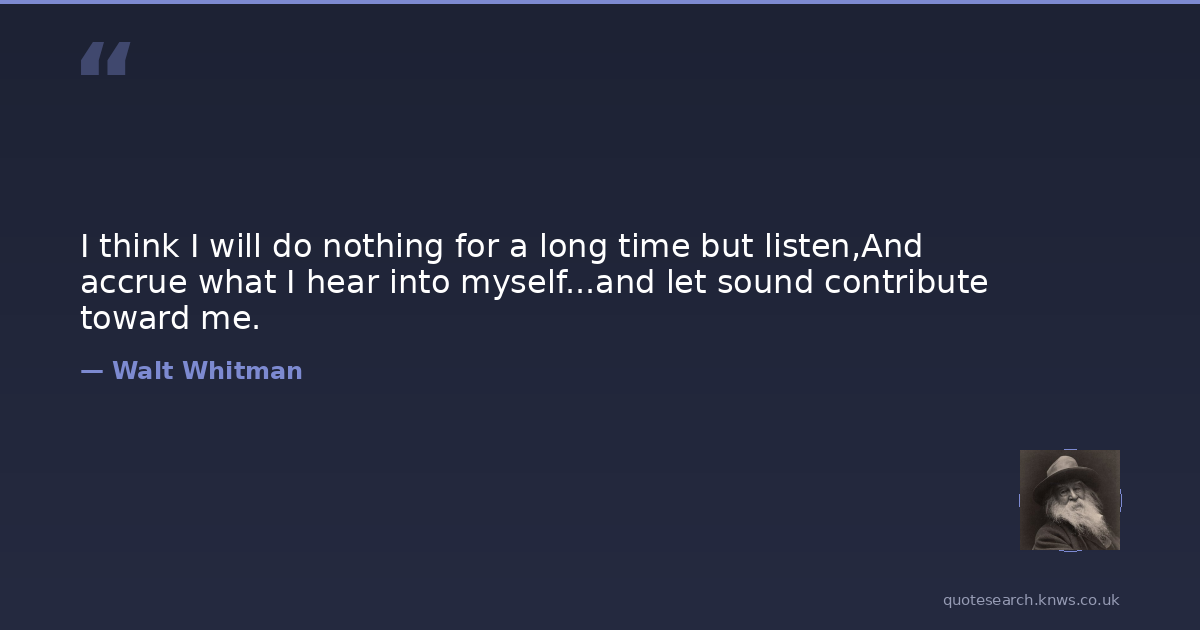 I think I will do nothing for a long time but listen,And accrue what I hear into myself...and let sound contribute toward me.
