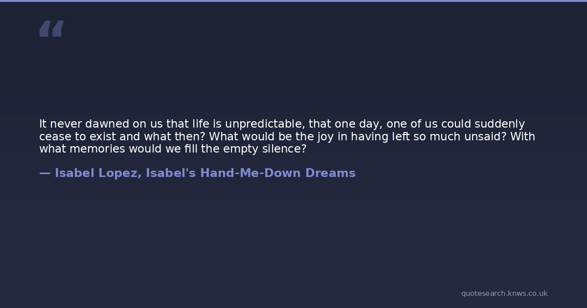 It never dawned on us that life is unpredictable, that one day, one of us could suddenly cease to exist and what then? What would be the joy in having left so much unsaid? With what memories would we fill the empty silence?