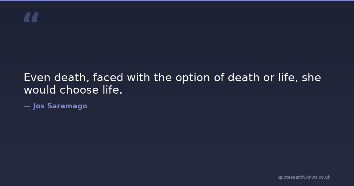 Even death, faced with the option of death or life, she would choose life. death life Download Image Share on X Share on Facebook Copy Link