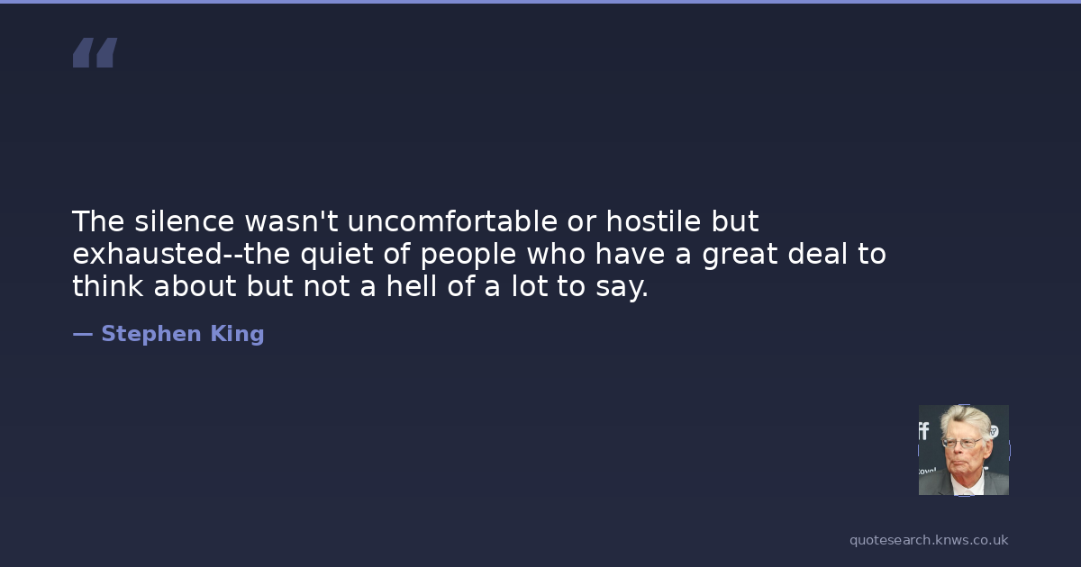 The silence wasn't uncomfortable or hostile but exhausted--the quiet of people who have a great deal to think about but not a hell of a lot to say.