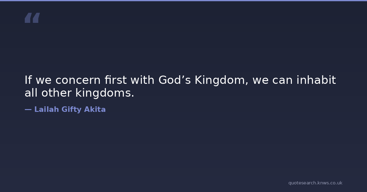 If we concern first with God’s Kingdom, we can inhabit all other kingdoms.