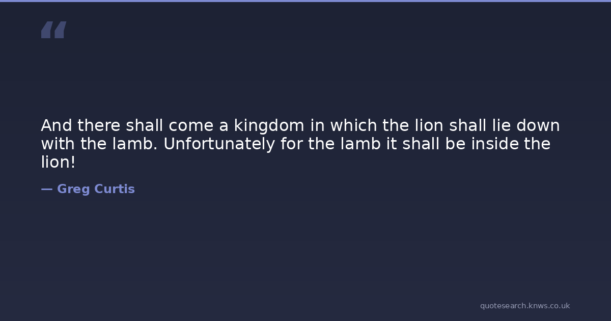 And there shall come a kingdom in which the lion shall lie down with the lamb. Unfortunately for the lamb it shall be inside the lion!