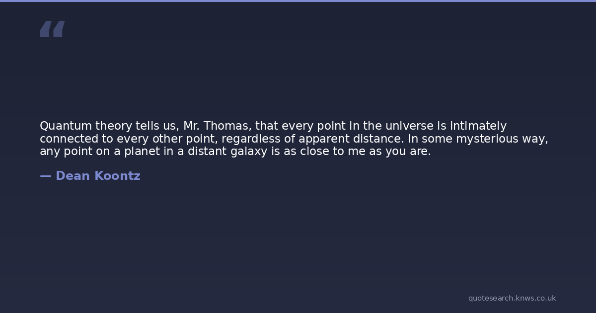 Quantum theory tells us, Mr. Thomas, that every point in the universe is intimately connected to every other point, regardless of apparent distance. In some mysterious way, any point on a planet in a distant galaxy is as close to me as you are.