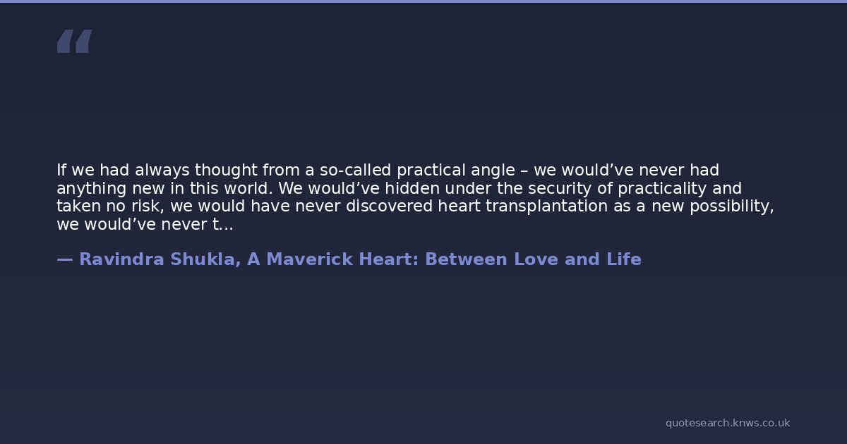 If we had always thought from a so-called practical angle – we would’ve never had anything new in this world. We would’ve hidden under the security of practicality and taken no risk, we would have never discovered heart transplantation as a new possibility, we would’ve never thought curing cancer patients a possibility, and we would’ve never discovered a new galaxy in the universe. Taking the cover of practicality is more or less like hiding under the cover of security for fear of failure.