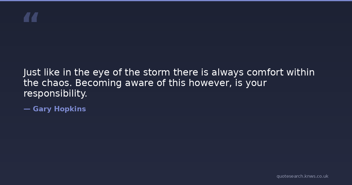 Just like in the eye of the storm there is always comfort within the chaos. Becoming aware of this however, is your responsibility.