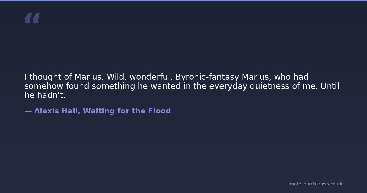 I thought of Marius. Wild, wonderful, Byronic-fantasy Marius, who had somehow found something he wanted in the everyday quietness of me. Until he hadn't.