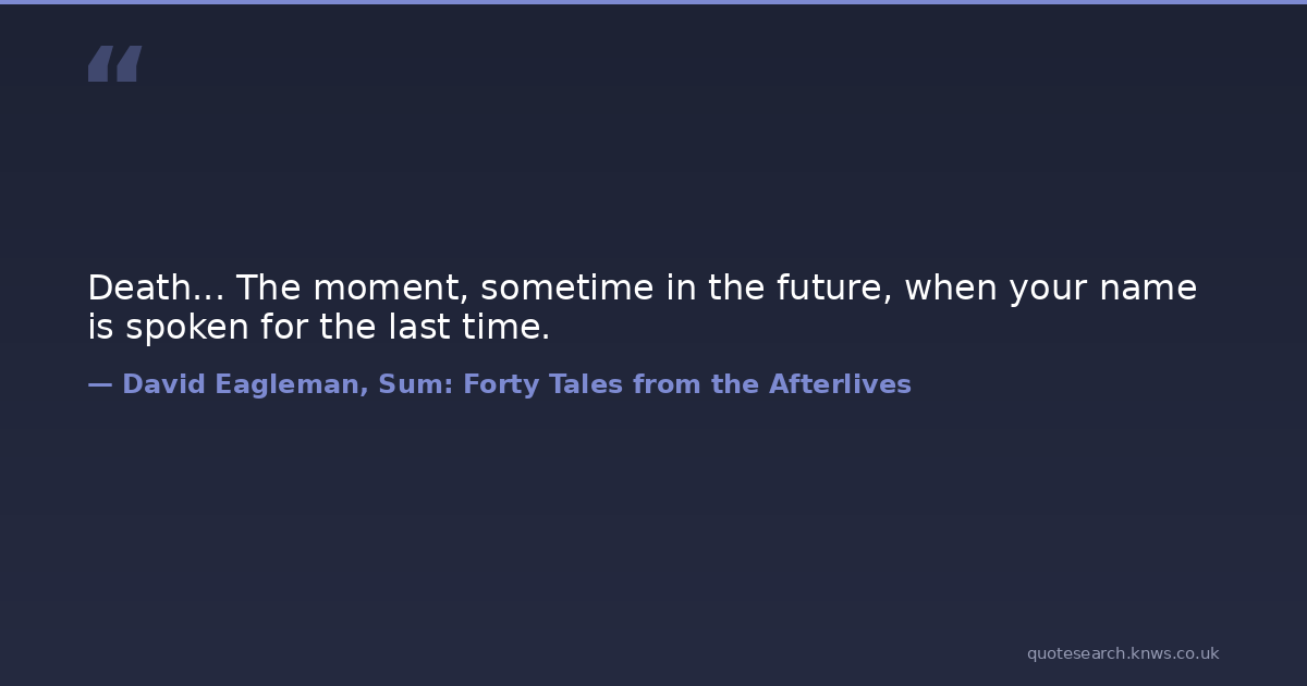 Death... The moment, sometime in the future, when your name is spoken for the last time.