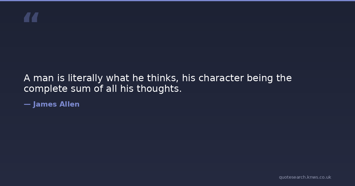 A man is literally what he thinks, his character being the complete sum of all his thoughts. character thought Download Image Share on X Share on Facebook Copy Link