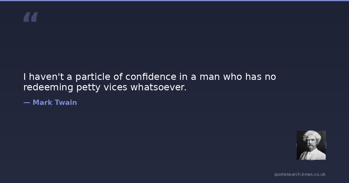 I haven't a particle of confidence in a man who has no redeeming petty vices whatsoever.