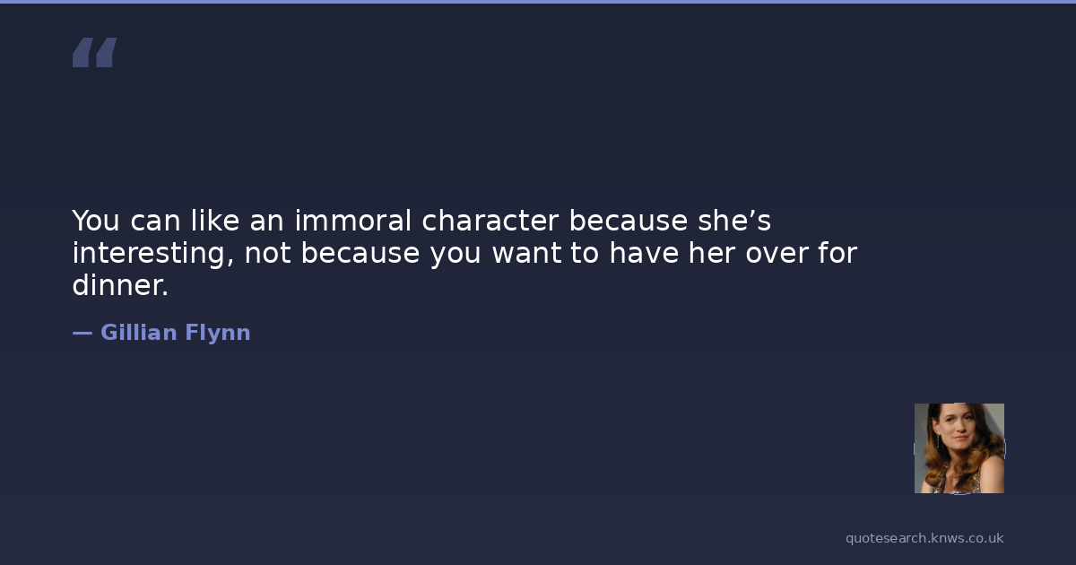 You can like an immoral character because she’s interesting, not because you want to have her over for dinner.