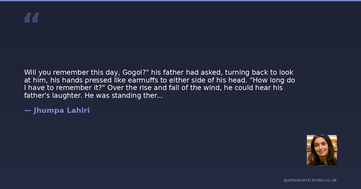 Will you remember this day, Gogol?" his father had asked, turning back to look at him, his hands pressed like earmuffs to either side of his head. "How long do I have to remember it?" Over the rise and fall of the wind, he could hear his father's laughter. He was standing there, waiting for Gogol to catch up, putting out a hand as Gogol drew near. "Try to remember it always," he said once Gogol reached him, leading him slowly back across the breakwater, to where his mother and Sonia stood waiting. "Remember that you and I made this journey, that we went together to a place where there was nowhere left to go.