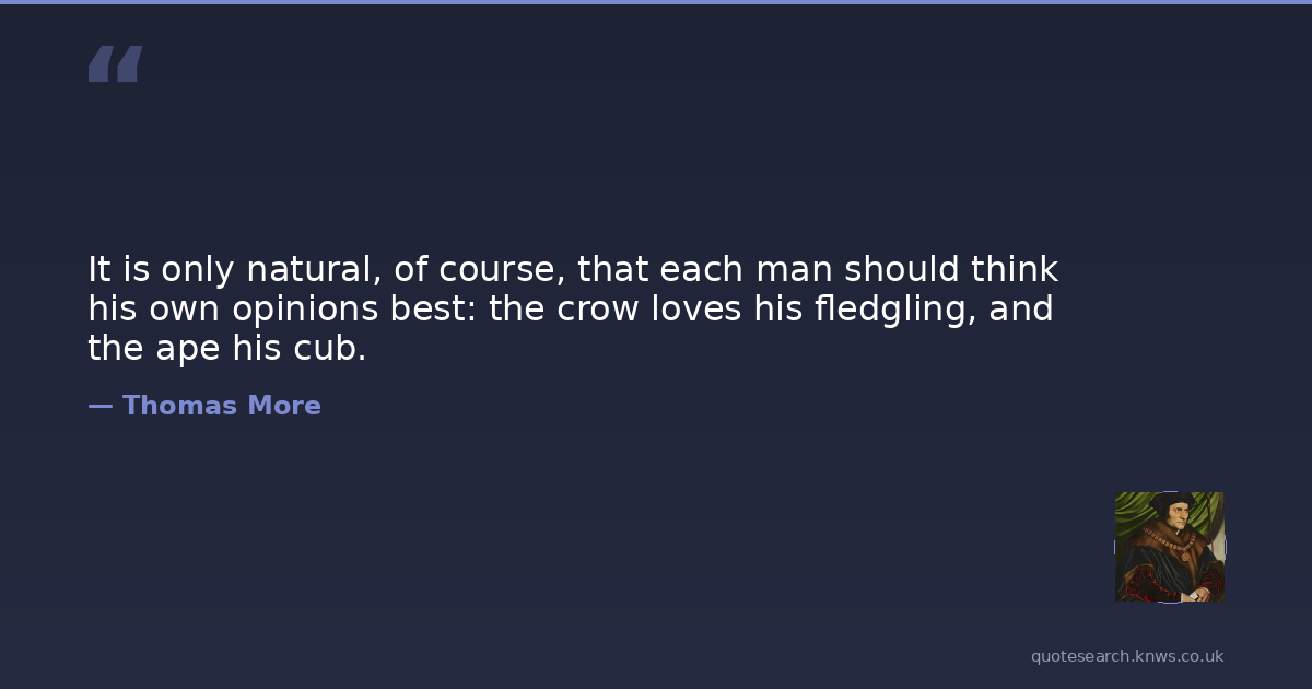 It is only natural, of course, that each man should think his own opinions best: the crow loves his fledgling, and the ape his cub.
