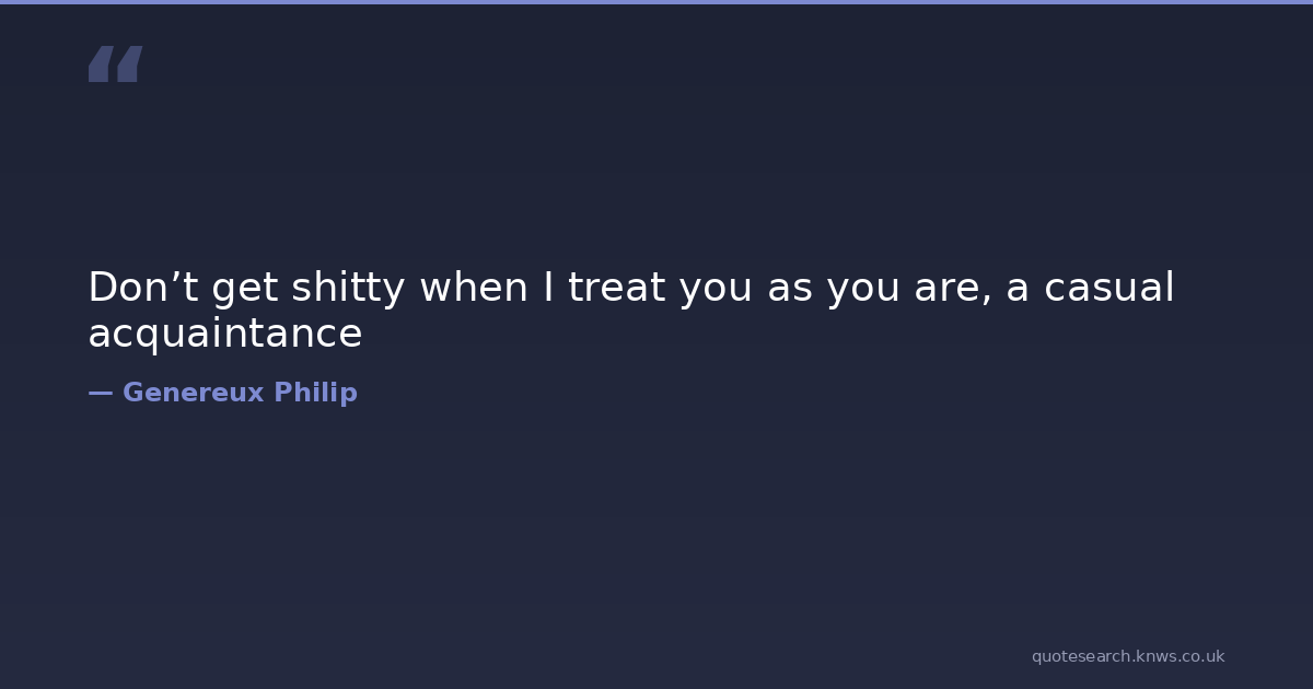Don’t get shitty when I treat you as you are, a casual acquaintance acquaintance casual don-t emotions happiness hate-quotes haters humble inpirational-quotes laugh laughter love shit-happens shitty shitty-world smile treating-others treats Download Image Share on X Share on Facebook Copy Link